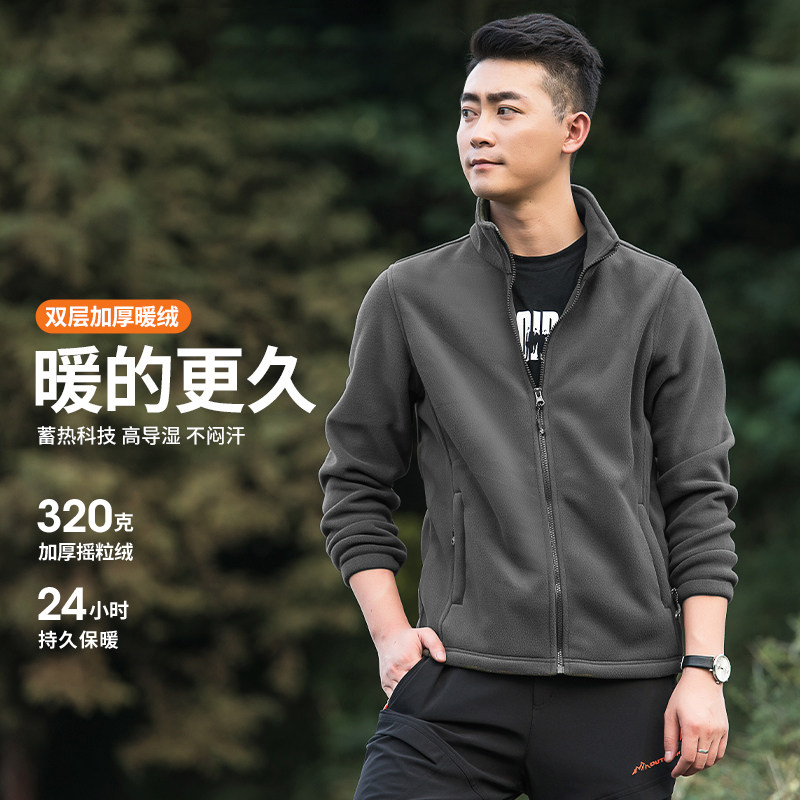 拓路者【400g双面摇粒绒】秋冬加厚保暖抓绒衣立领开衫外套夹克男