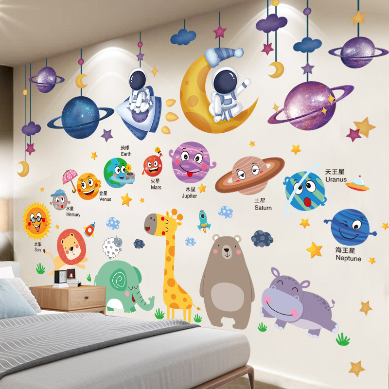 新款防水墙贴星际探险图画贴卧室客厅可移除装饰品儿童房贴画壁贴