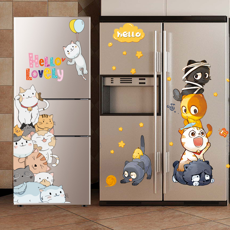 三只猫咪看太阳落地窗玻璃装饰贴纸儿童卡通温馨图案新房布置贴画