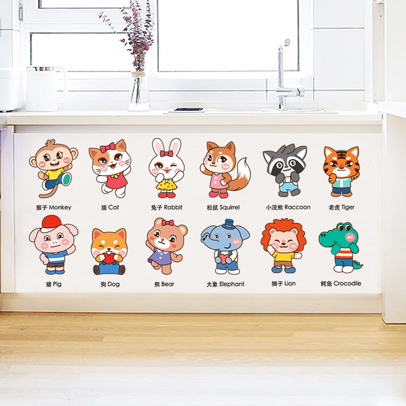 卡通小动物贴纸儿童房贴画宝宝房间墙贴幼儿园墙面装饰自粘墙壁纸