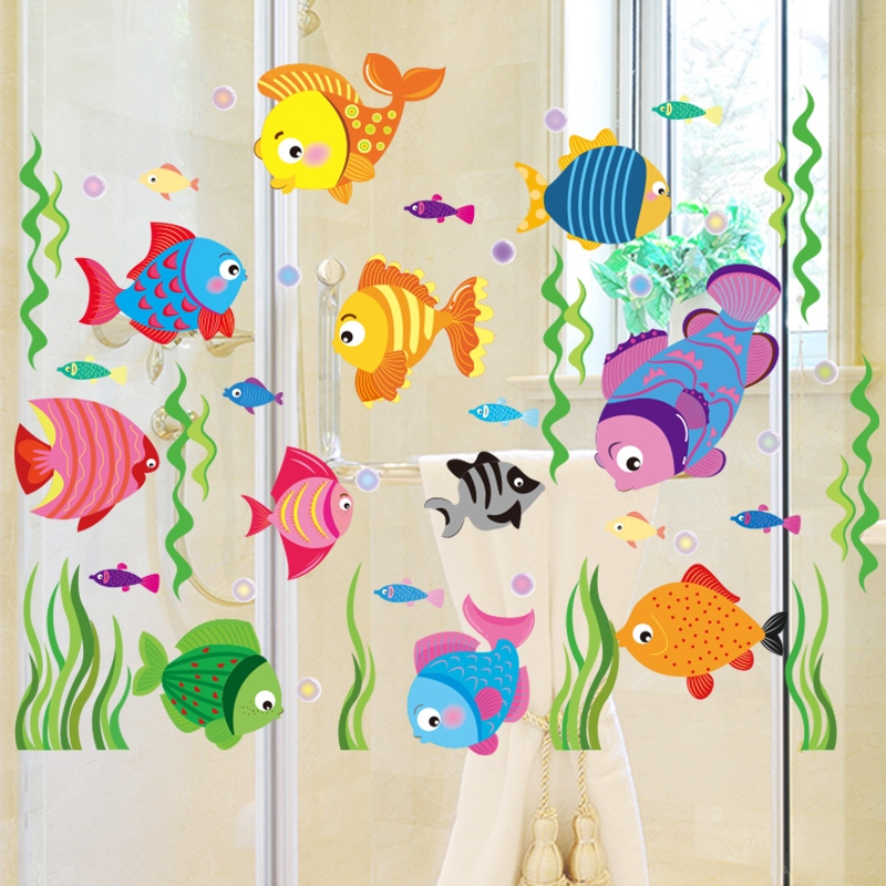 玻璃门贴纸卡通小鱼浴室卫生间厕所瓷砖窗花贴装饰儿童房贴画自粘