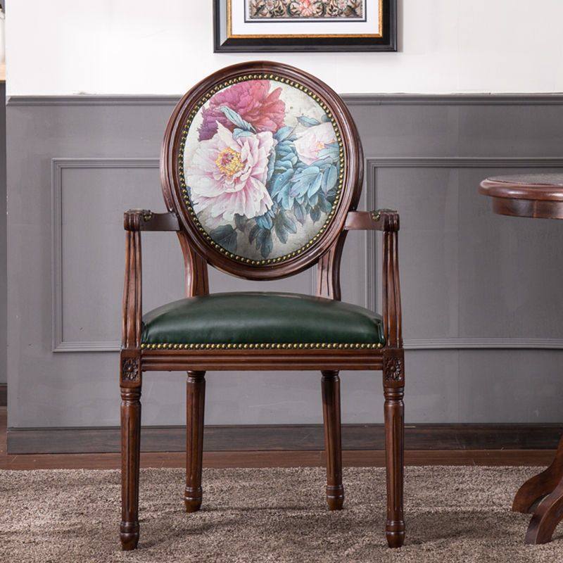 美式复古实木餐椅书椅高靠背布艺刺绣真皮软包椅复古乡村餐厅家具