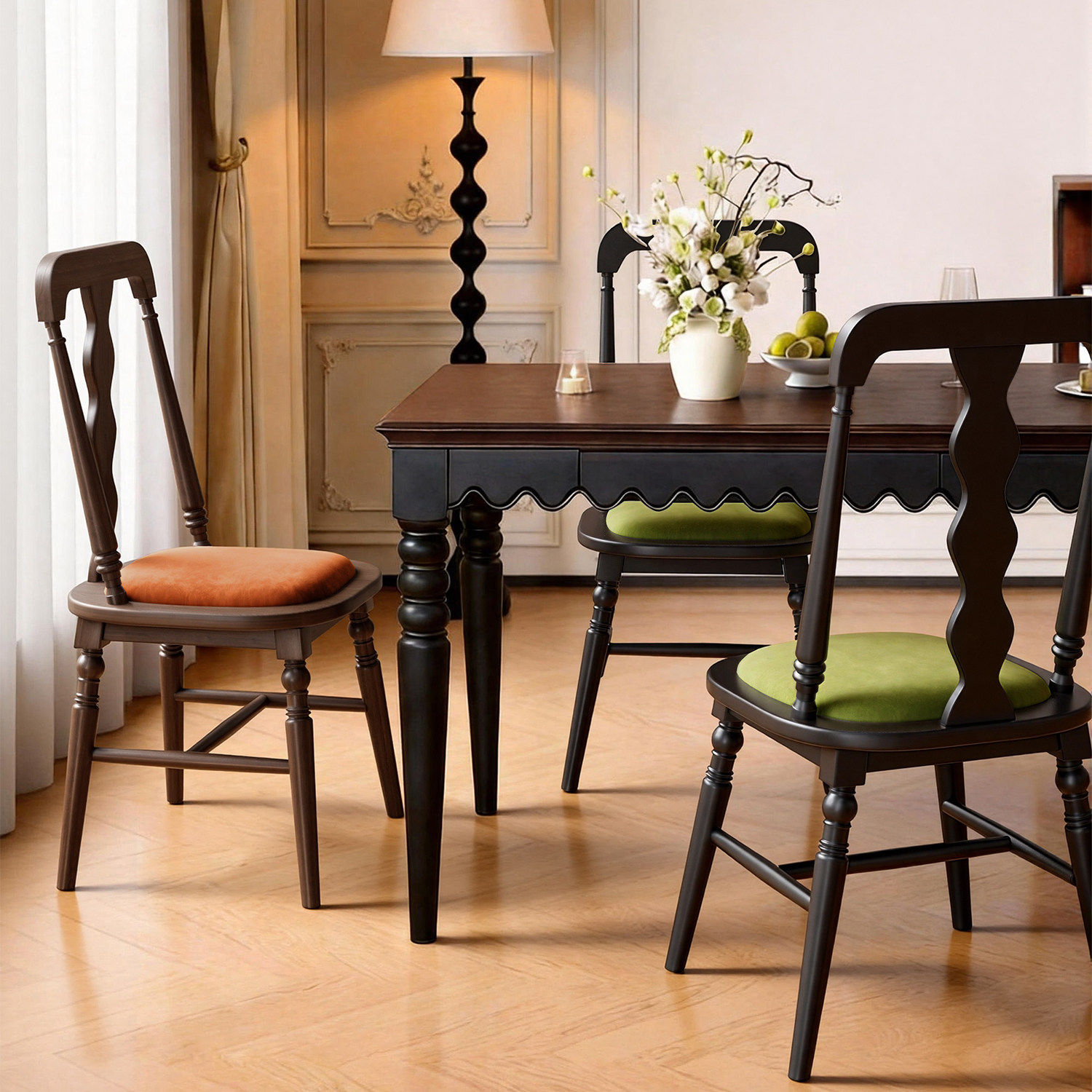 法式复古实木餐椅家用侘寂中古风餐桌椅设计师高级感北欧靠背椅子