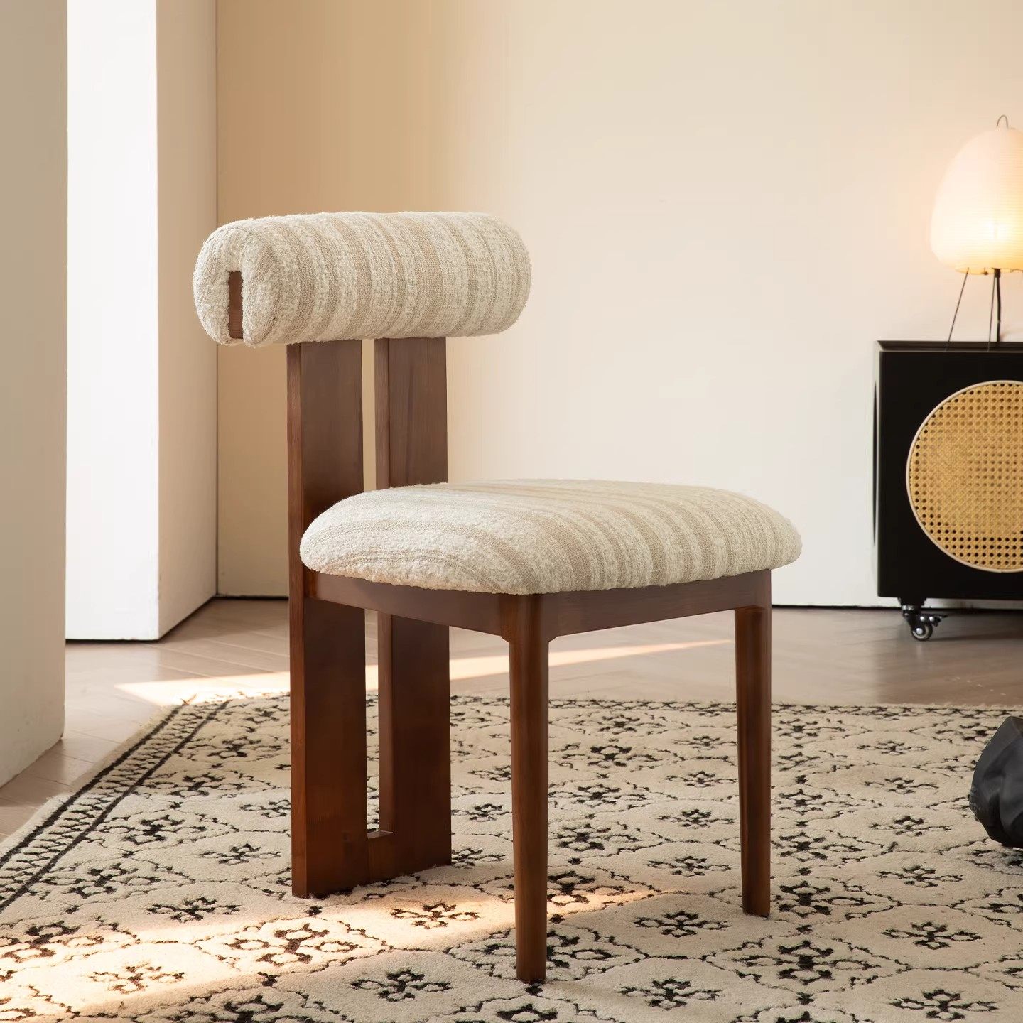法式复古实木餐椅家用设计师中古靠背椅子侘寂风卧室化妆椅钥匙椅