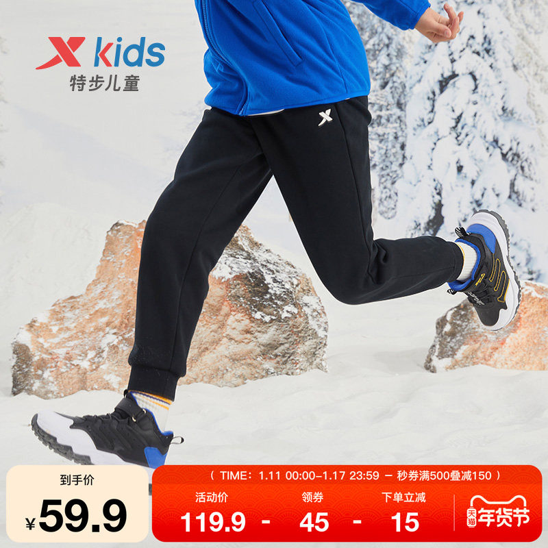 特步童装男童裤子加绒秋冬新款大童休闲运动裤长裤儿童保暖裤春装