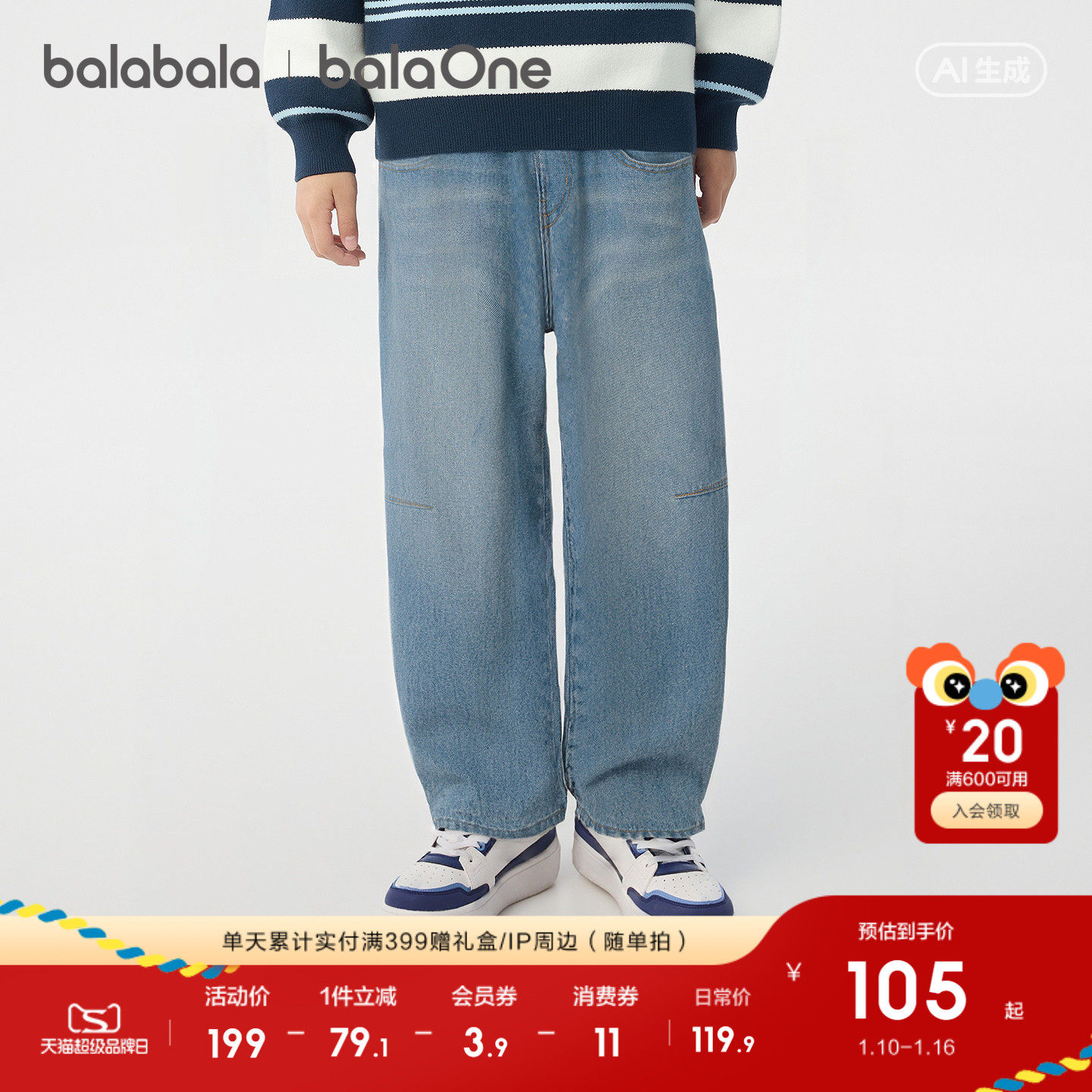 巴拉巴拉童装男童长裤儿童裤子2026新款春装宽松牛仔裤复古潮休闲