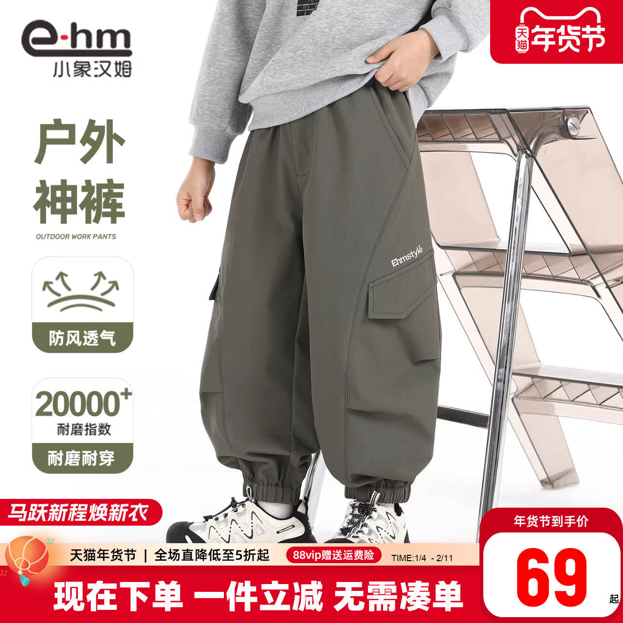 小象汉姆童装男童裤子户外工装裤儿童休闲长裤中大童2026春装新款