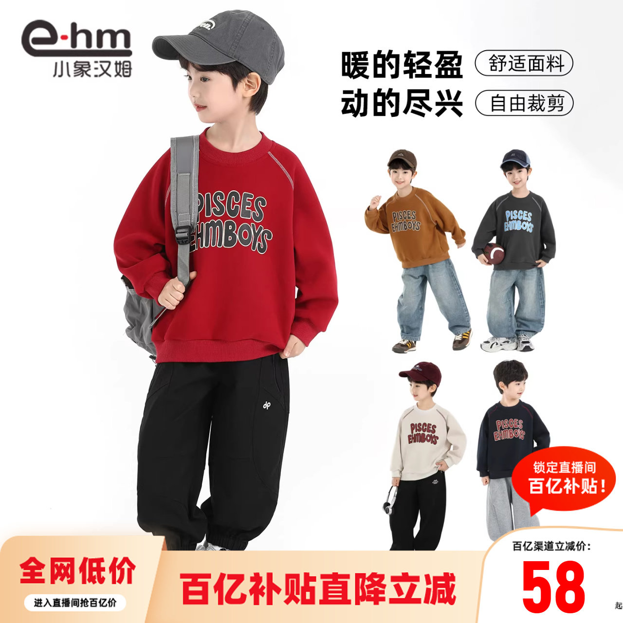 小象汉姆童装男童卫衣2026新款春装儿童红色新年拜年服男孩上衣
