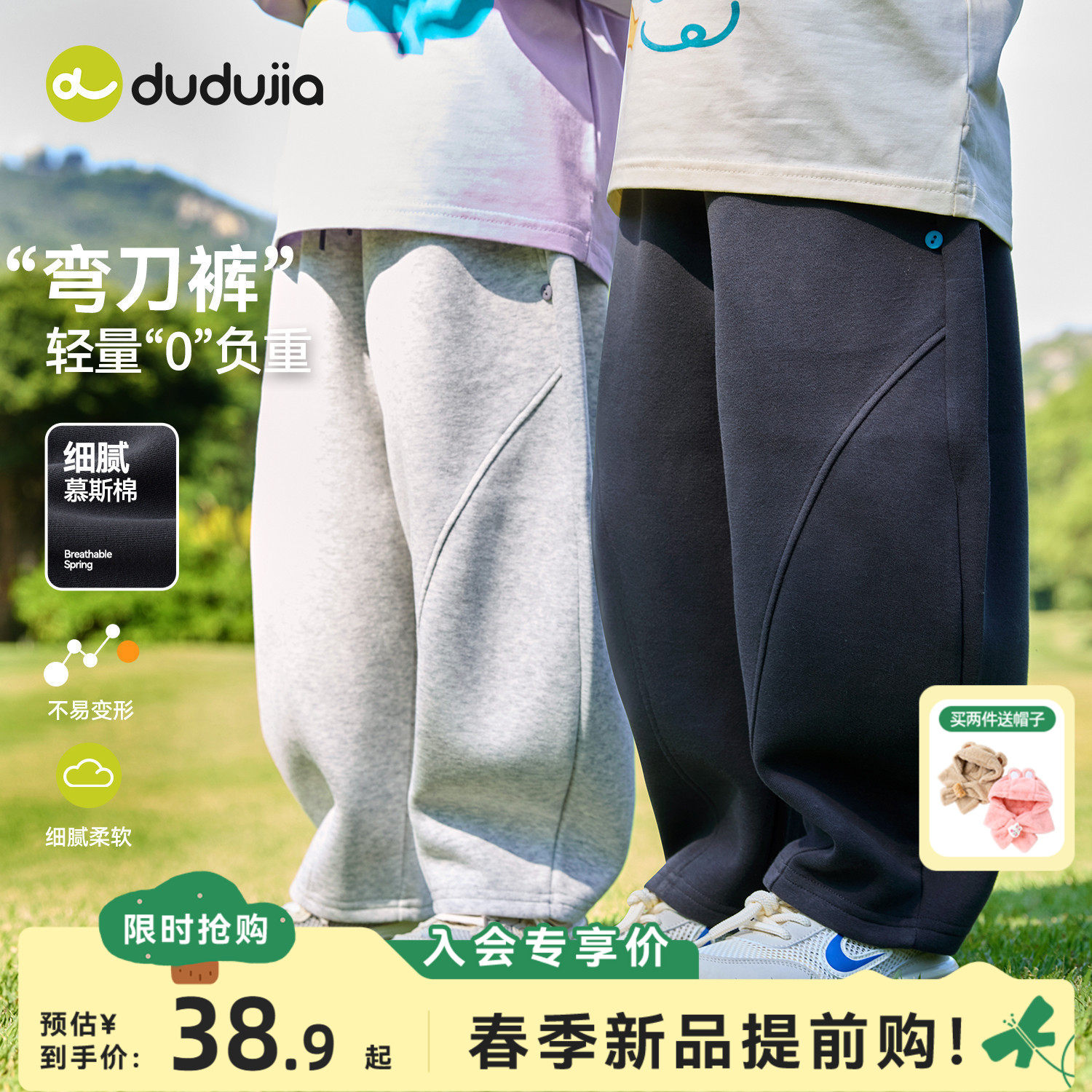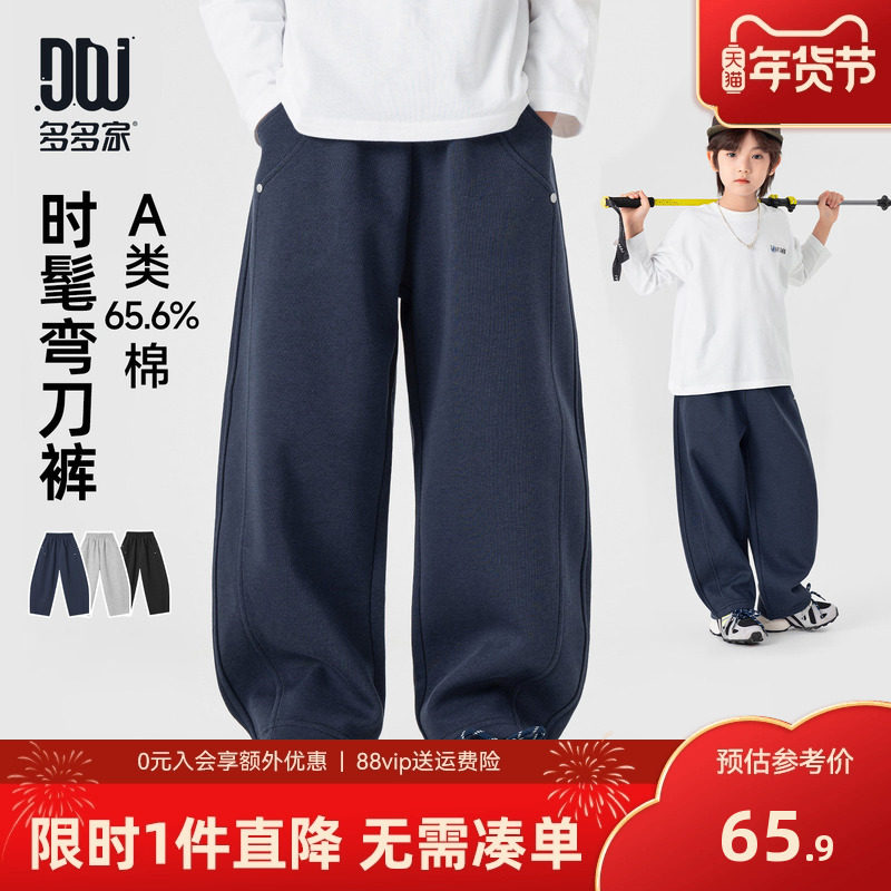 多多家男童卫裤弯刀裤2026春装新款春秋季儿童中大童简约百搭裤子
