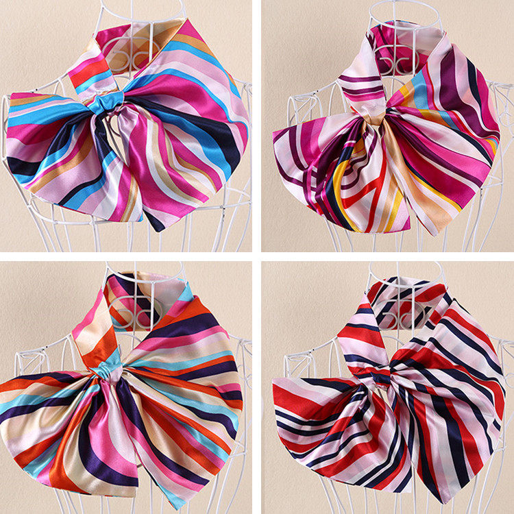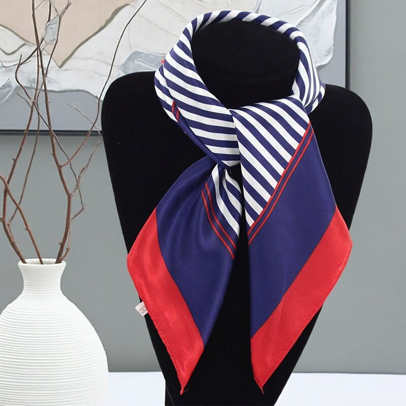 女士条纹印花小方巾工作服移动礼仪银行职业仿真丝领巾水兵舞丝巾