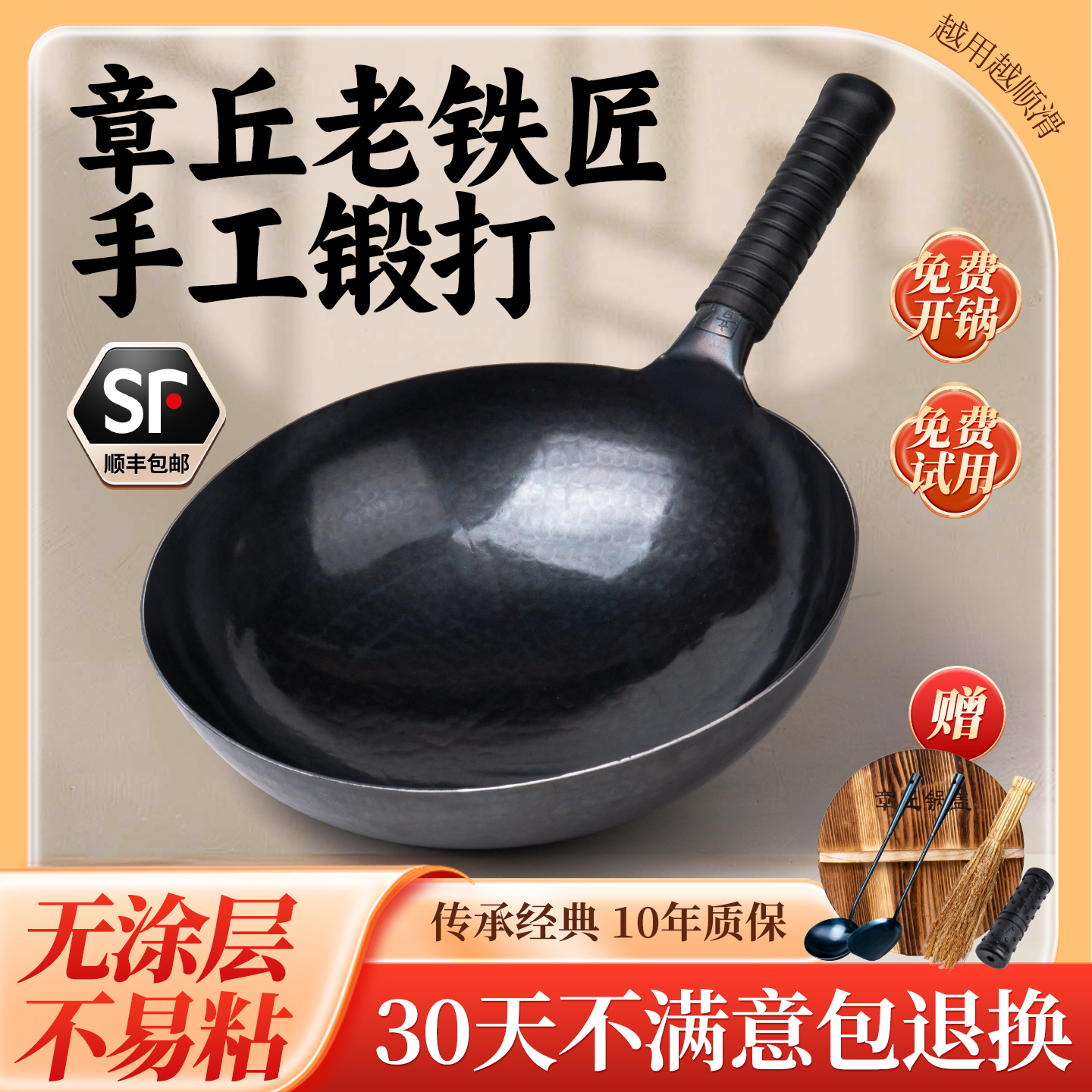 手工锻打老式家用炒菜锅正品铁锅官方旗舰店天猫纯正不粘锅无涂层