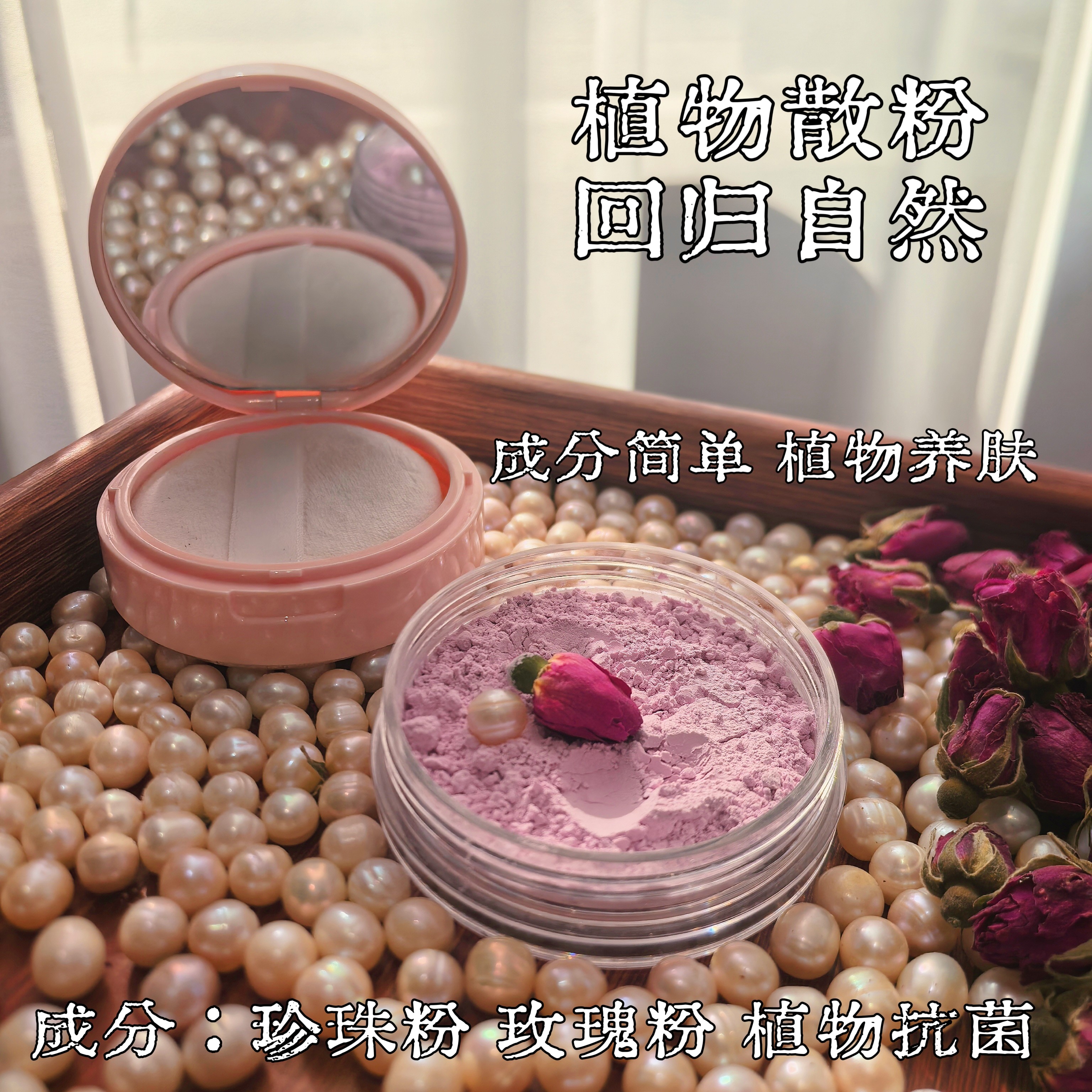 成分表简单的植物散粉 珍珠粉玫瑰散粉 定妆粉 养肤纯植物蜜粉