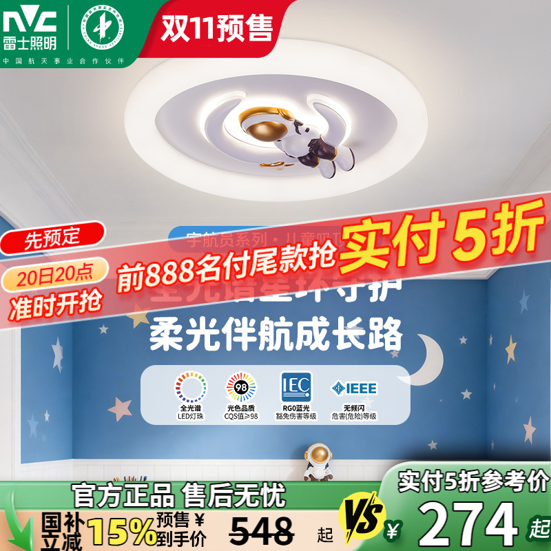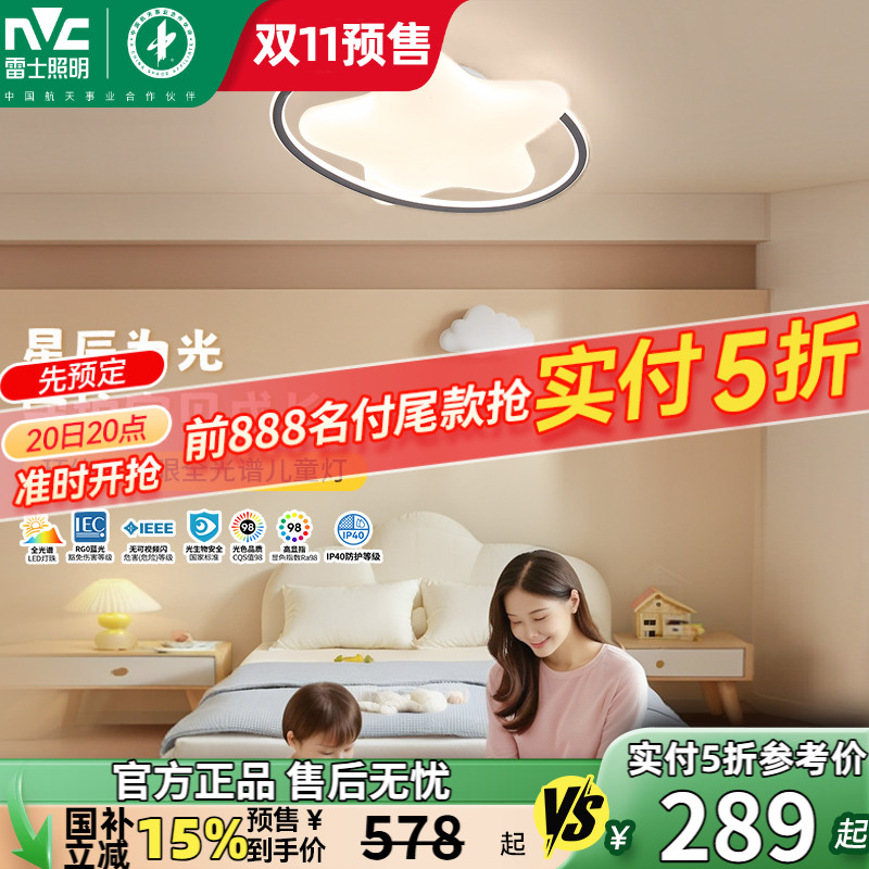 雷士照明儿童房灯主卧室灯全光谱吸顶灯男孩女孩房间灯具护眼吸顶