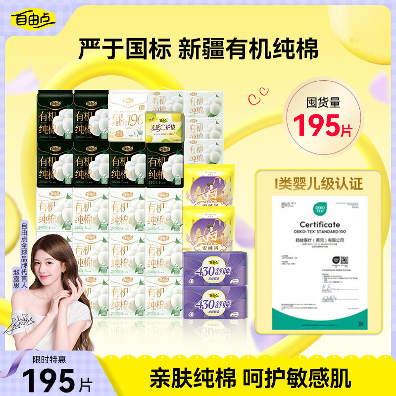 【直播专属】自由点有机纯棉表层卫生巾日夜用送超大行李箱汉堡凳
