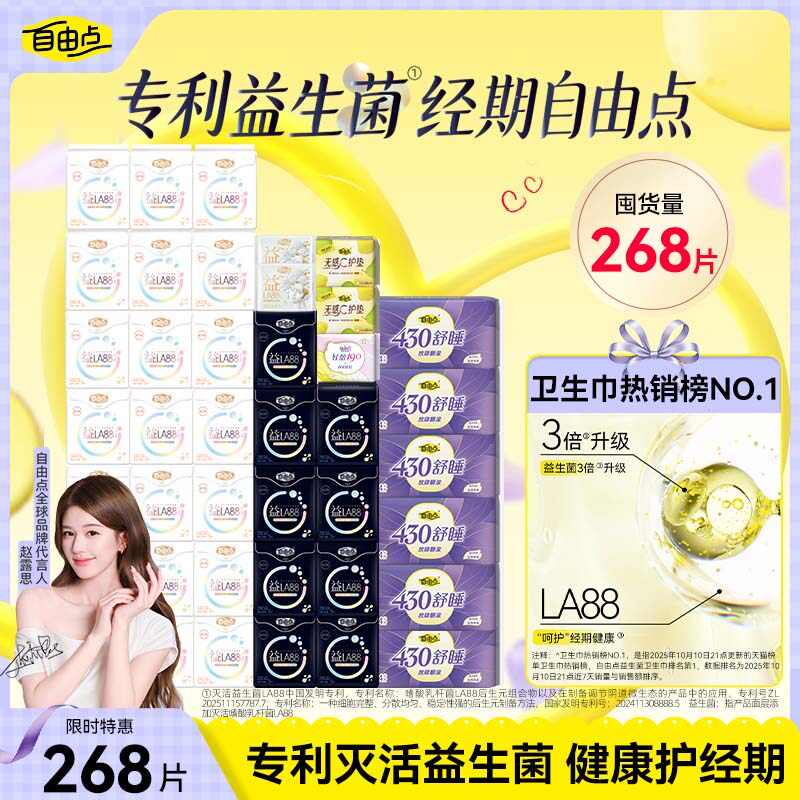 自由点益生菌卫生巾日夜用组合姨妈巾官方送超大行李箱囤货旗舰店