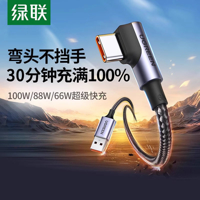 绿联type-c数据线双弯头吃鸡游戏快充适用苹果华为p20nova4p9三星平板小米荣耀手机安卓1.5/2米充电器tpc-c线