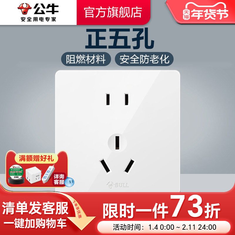 - 公牛开关插座 五孔
