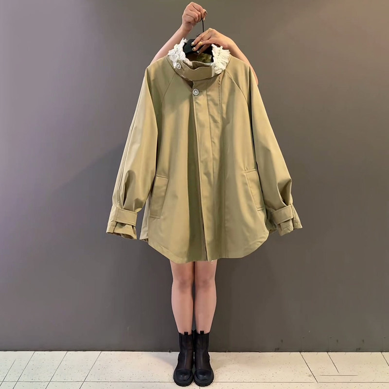 2025春季新款钉珠领口立领风衣胖MM显瘦上衣休闲减龄大码女装外套