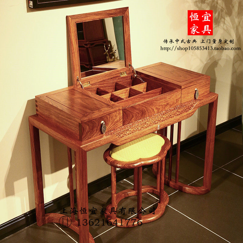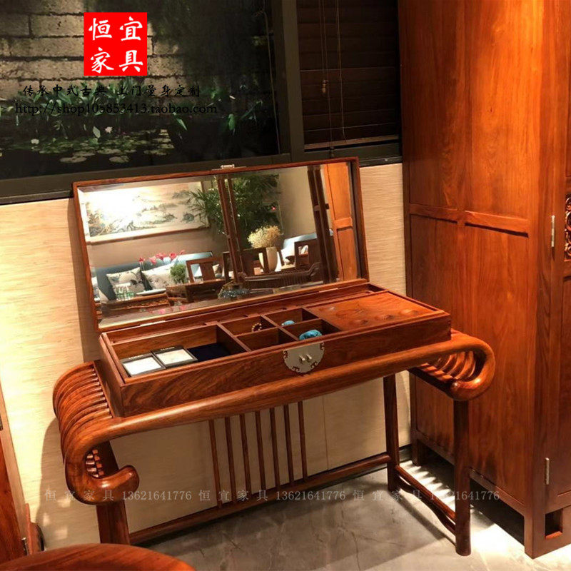 恒宜刺猬紫檀红木梳妆台实木家具简约卧室新中式花梨木祥云化妆桌