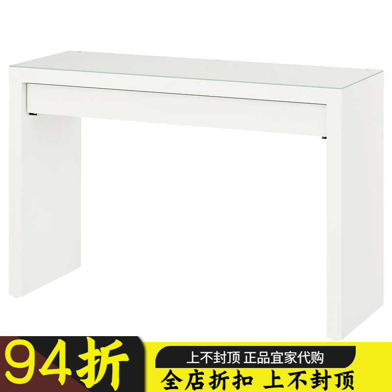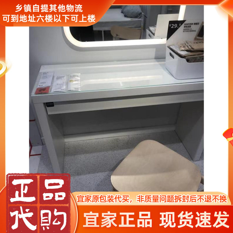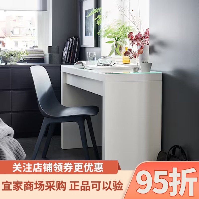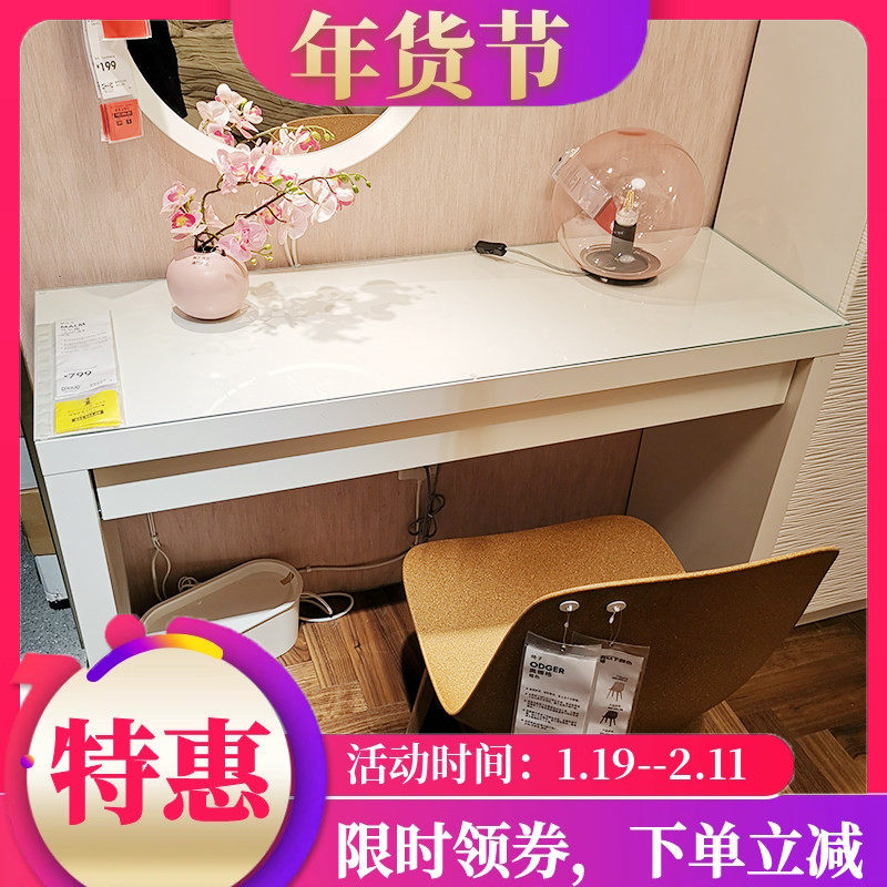 宜家马尔姆梳妆台玻璃面卧室化妆桌白经济型多功能化妆台国内代购