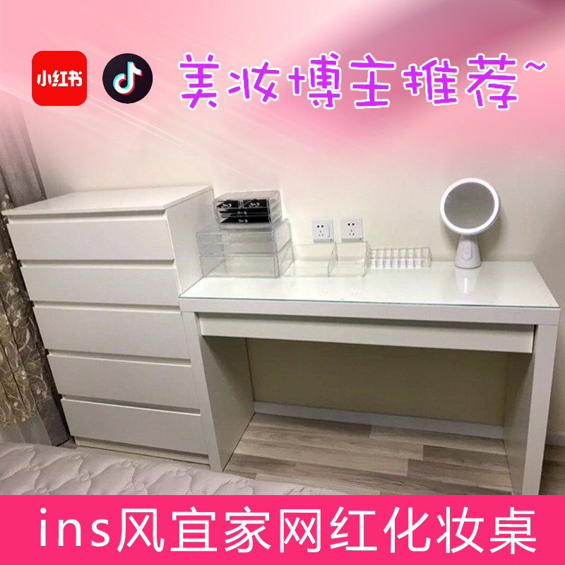 国内宜家代购卧室化妆桌白经济型多功能化妆台马尔姆梳妆台玻璃面