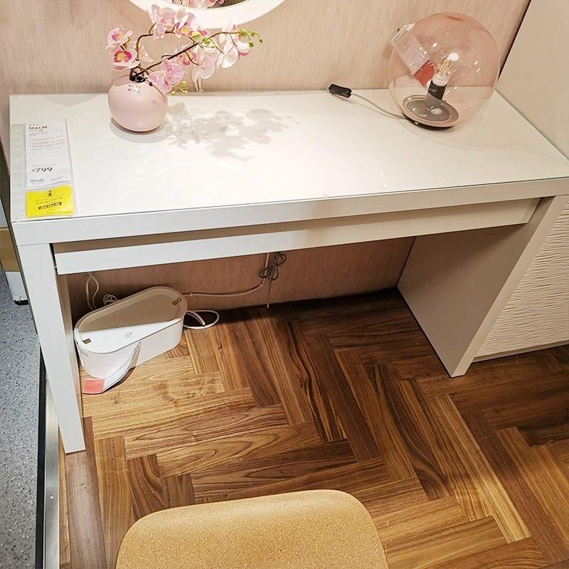 宜家马尔姆梳妆台化妆台化妆桌白色卧室桌带玻璃面妆台抽屉化妆桌