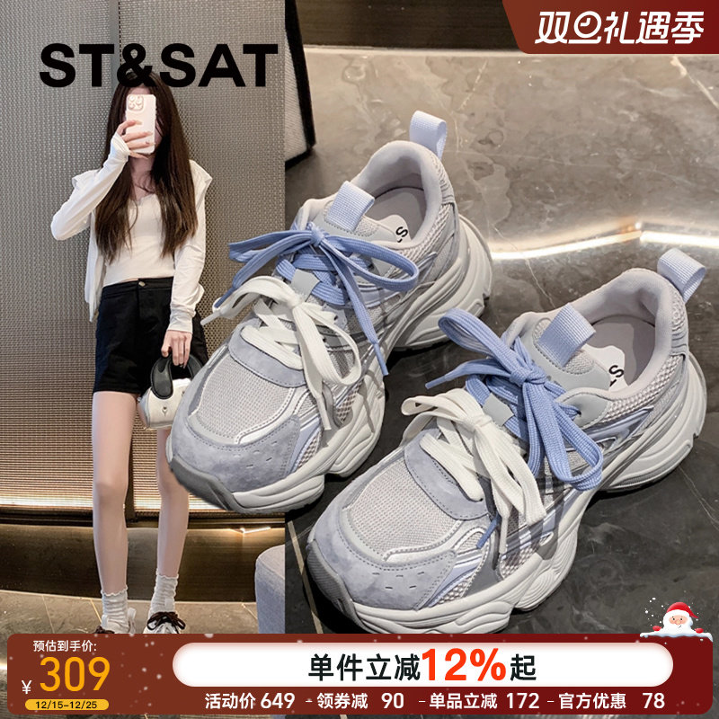 星期六韩版厚底老爹鞋女款2025新款拼色小个子增高阿甘运动休闲鞋