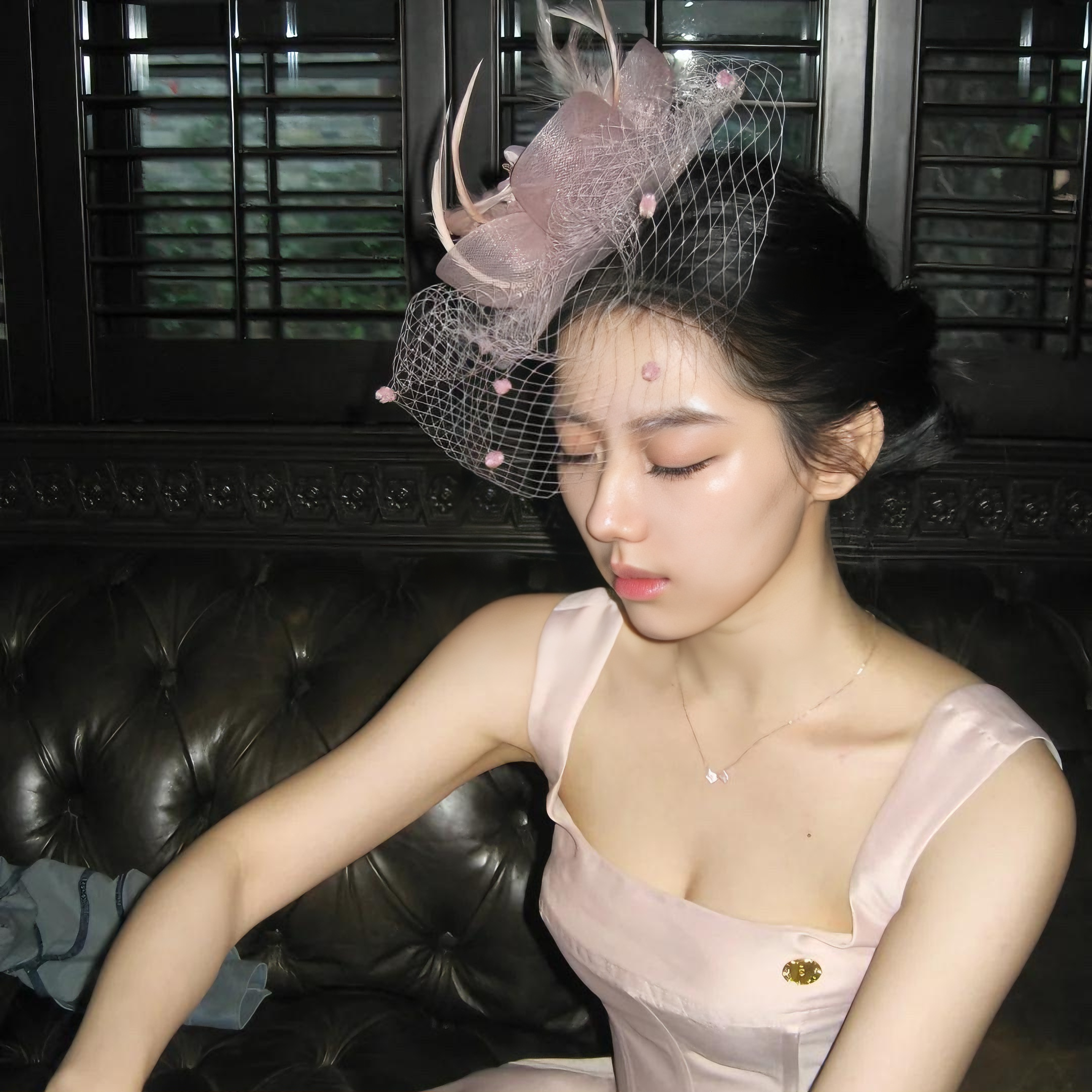 法式名媛粉色网纱小礼帽民国风千金宴会新娘婚纱头饰优雅羽毛面纱