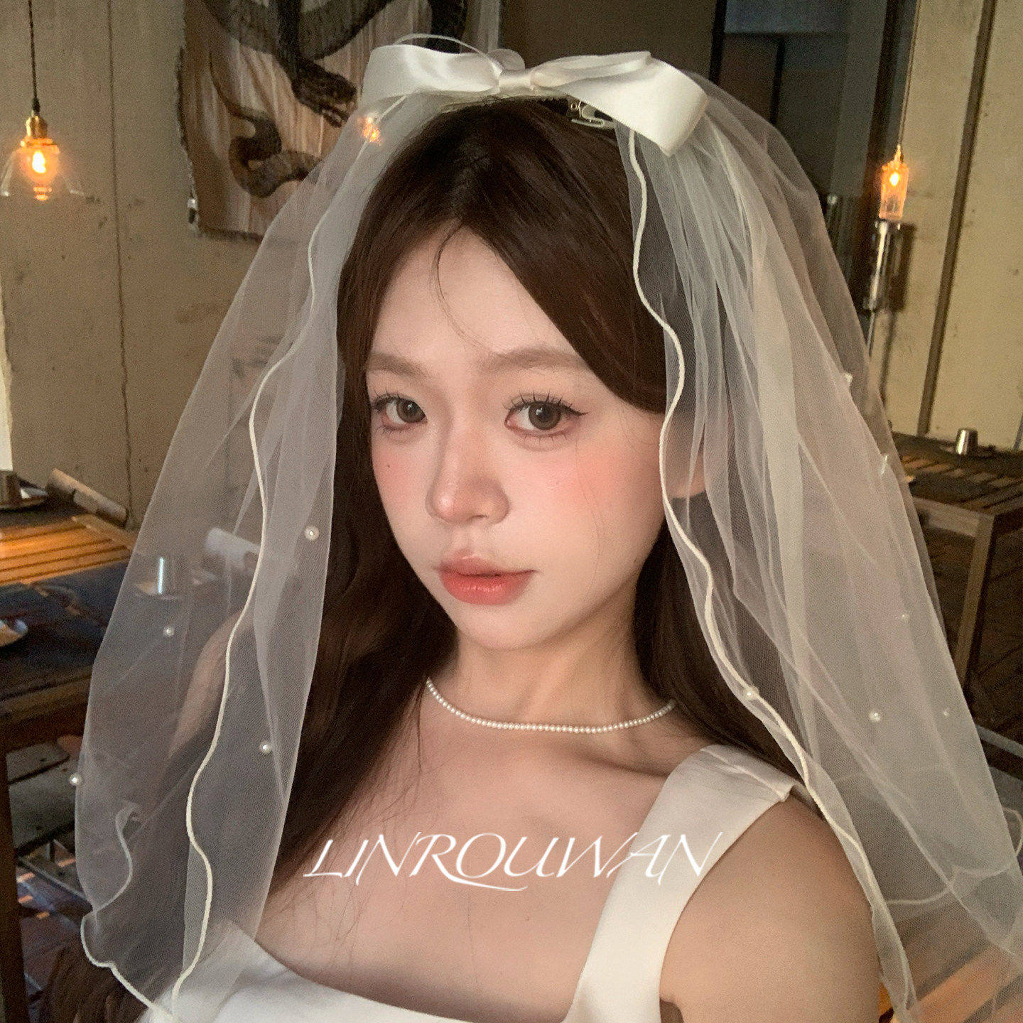 蝴蝶结头纱领证白森系超仙婚纱头饰求婚拍照道具高级感清新氛围感