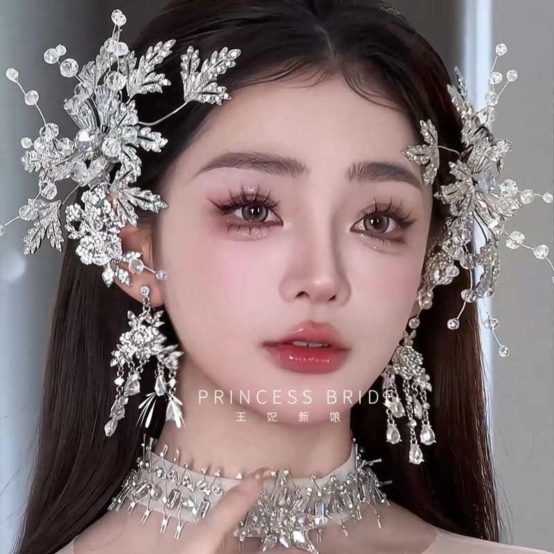 王妃新品轻奢超闪水钻侧边发夹新娘耳饰婚纱头饰减龄结婚跟妆发饰