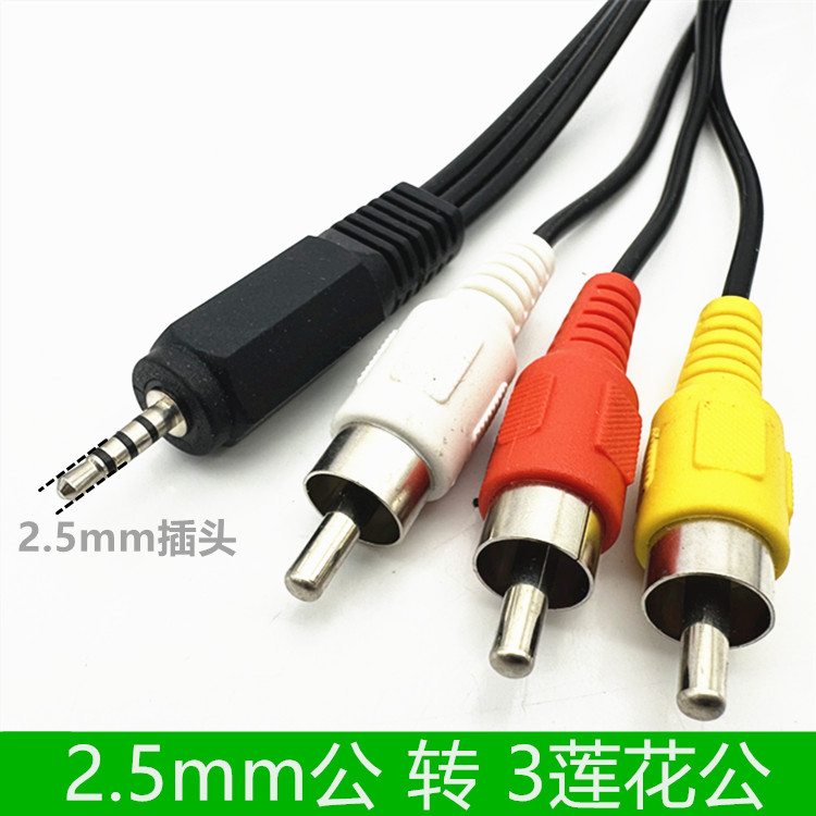 2.5mm公转莲花头3RCA公1/2代转接线小米机顶盒扩展线盒子一分三AV