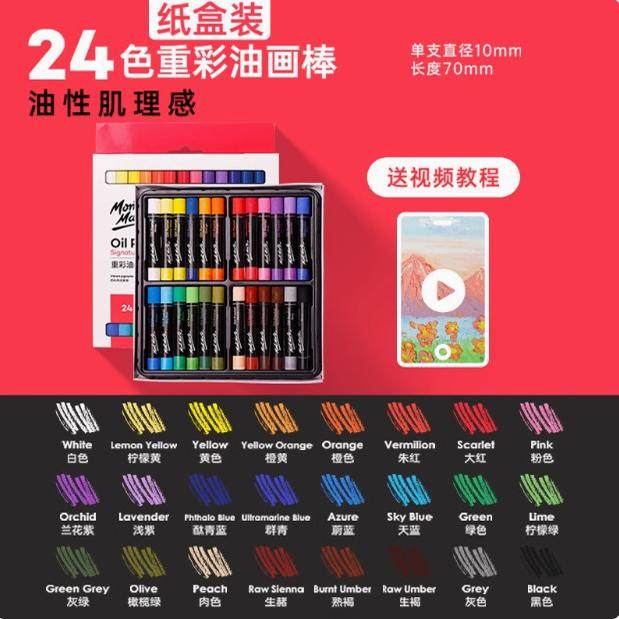 Marco马可雷诺阿系列重彩油画棒36色蜡笔套装24色蜡笔油画棒不脏手儿童油画棒学生涂鸦手绘画画套装48色