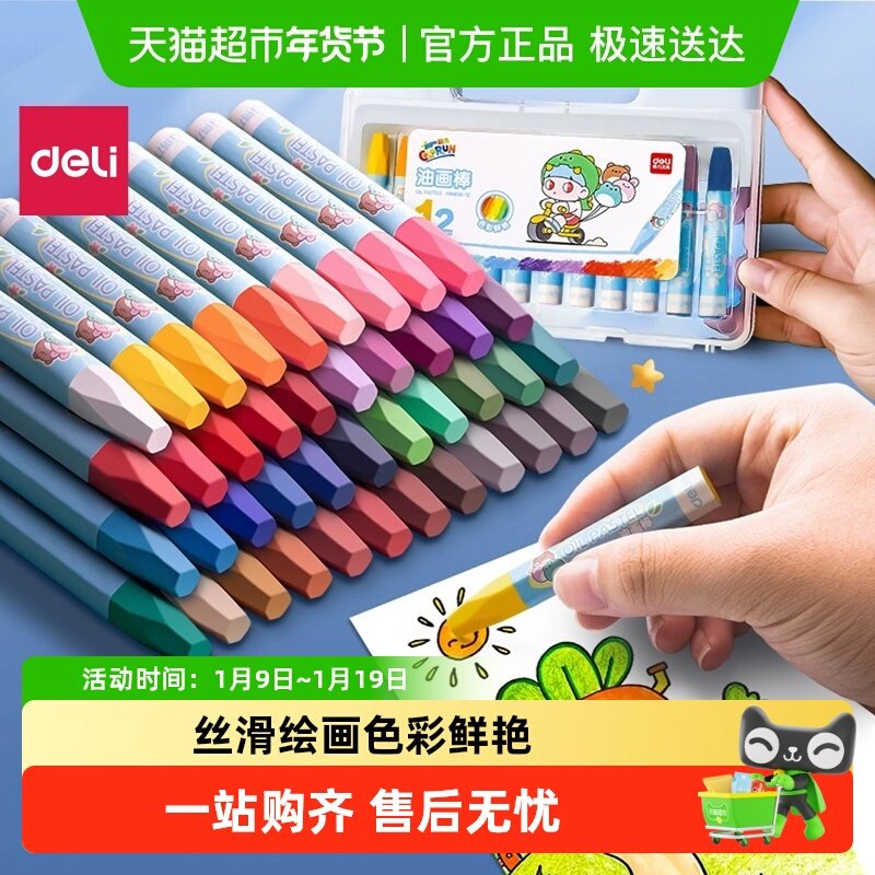 得力蜡笔幼儿园专用不脏手油画棒儿童安全无毒可水洗水彩笔套装画笔炫彩棒画画彩笔24色腊笔12色彩色油性色彩