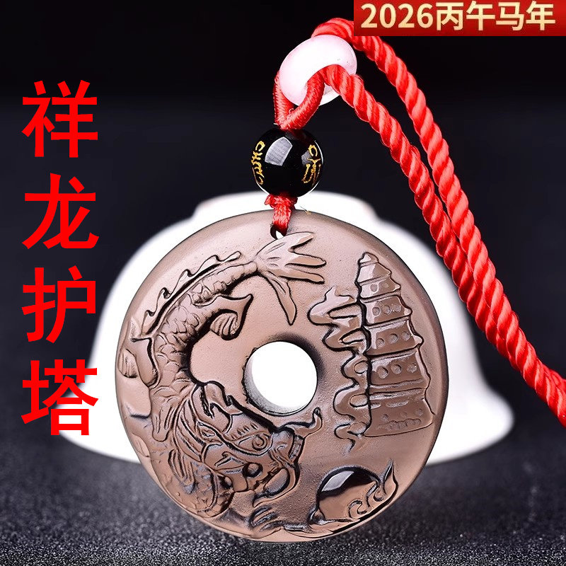 淘运阁祥龙护塔吉宏吊坠属鼠人吉祥佩戴物2026马年黑曜石葫芦项链
