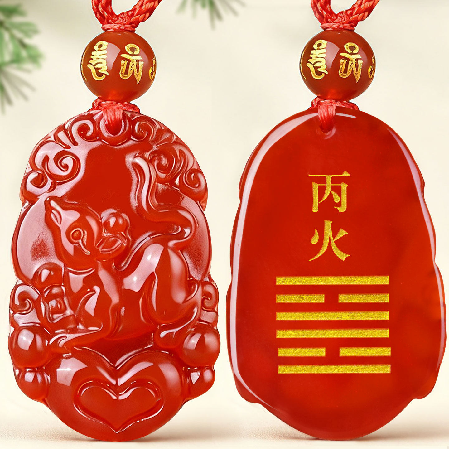 五行属火缺火红玛瑙生肖属鼠吊坠丙火丁火能量牌离为火卦补火吊坠