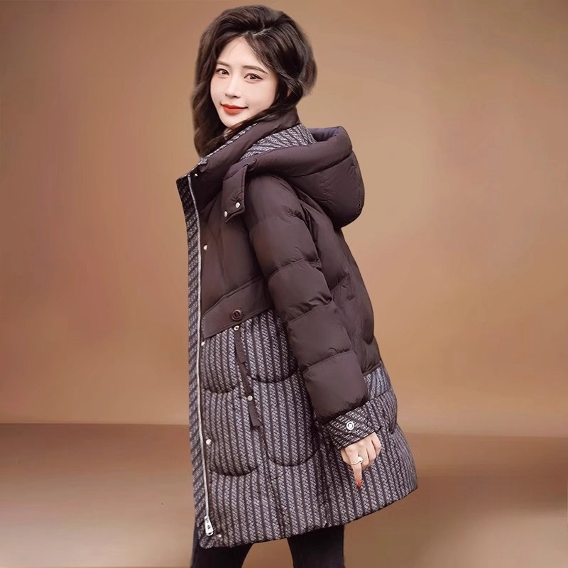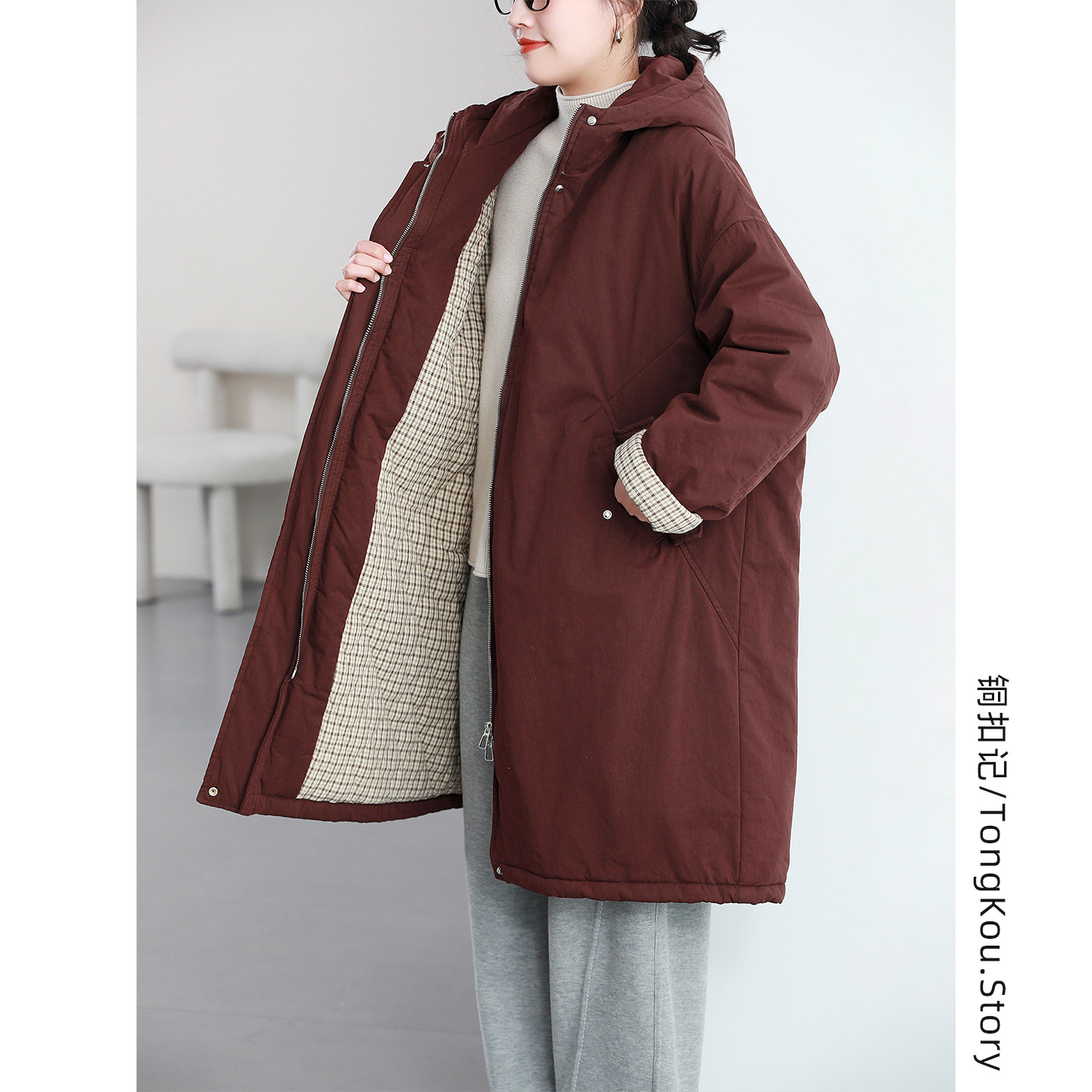 铜扣记夹棉外套女连帽休闲百搭宽松显瘦冬季新款加厚中长款棉服女