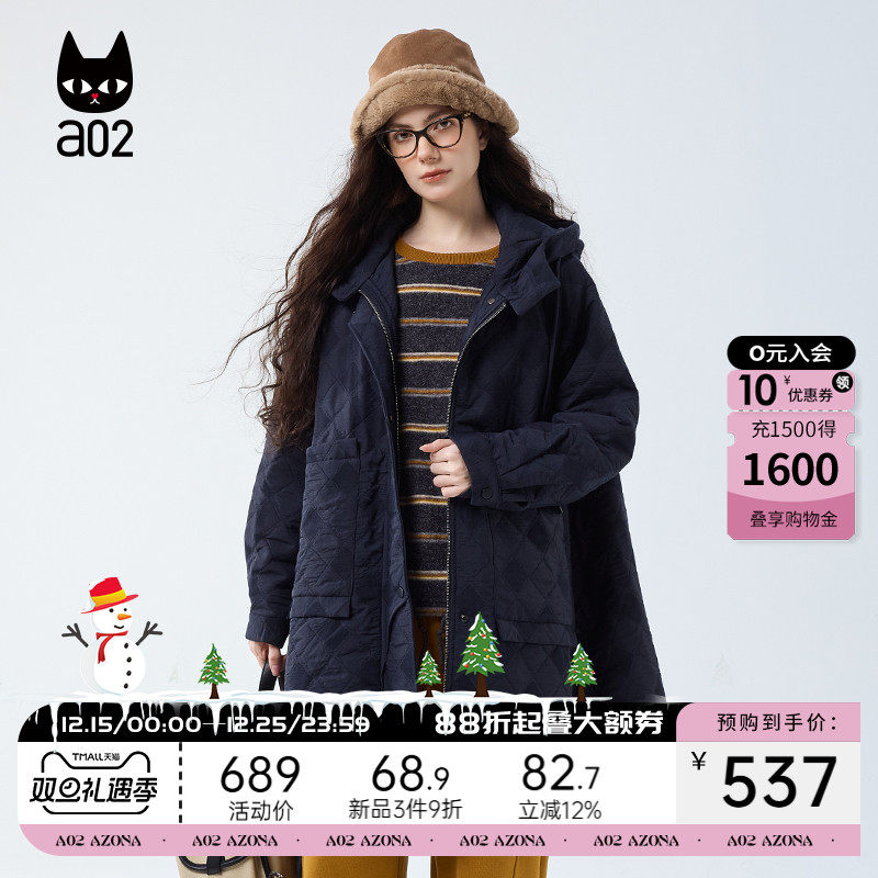 a02宽松连帽中长款棉服女2025新款冬季棉衣外套保暖冬装防风通勤