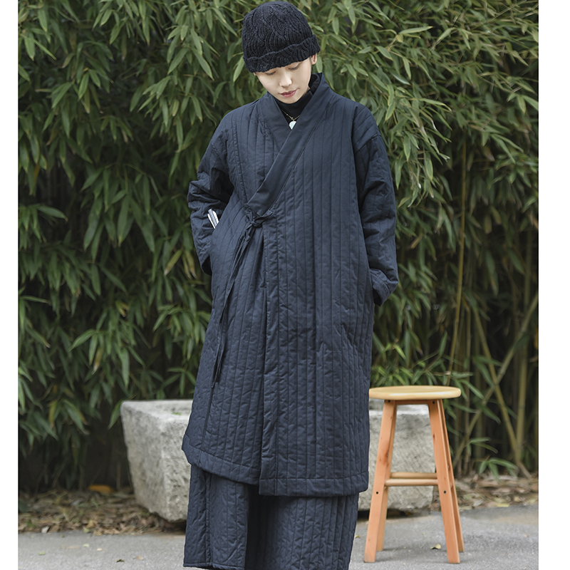 新中式斜襟夹棉棉衣女款冬季系带高密棉绗棉保暖中长款棉服女加厚