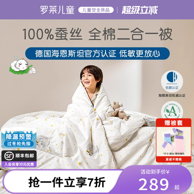 罗莱儿童100%A类蚕丝被春秋被抗菌被子母被二合一蚕丝被冬被被芯