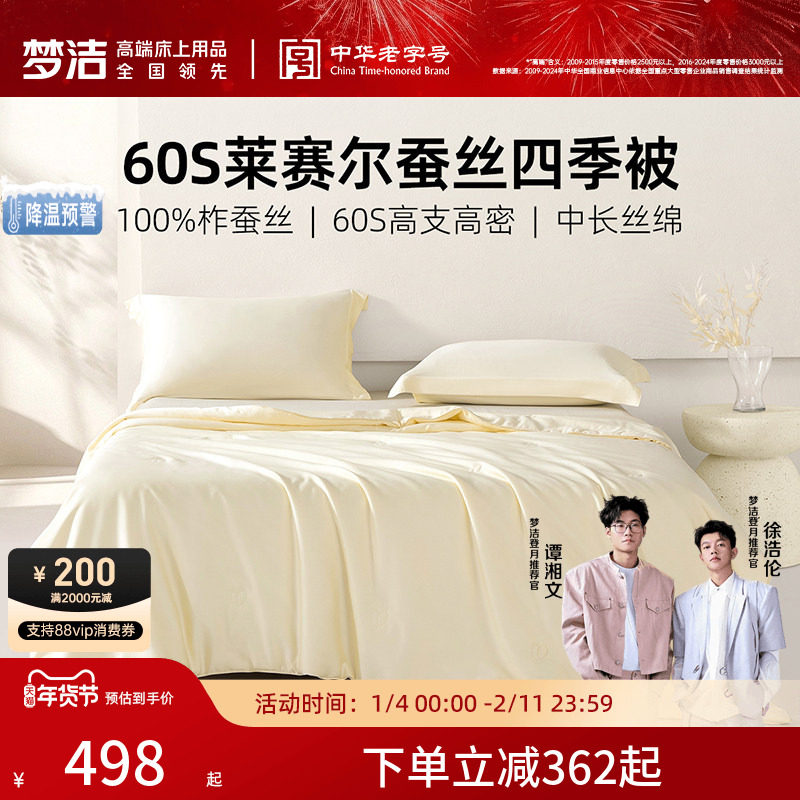 梦洁家纺被子100%蚕丝被被芯四季被莱赛尔柞蚕丝宿舍抗菌保暖新品