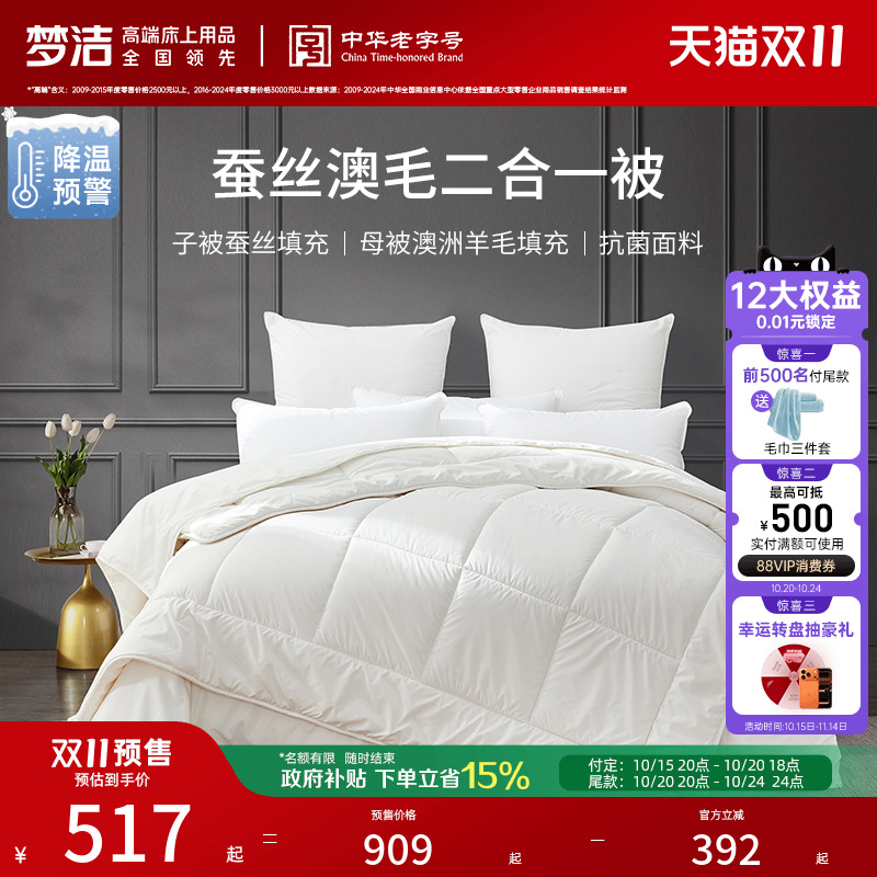 罗莱家纺被子蚕丝澳洲进口羊毛二合一子母被抗菌防螨被芯四季可用