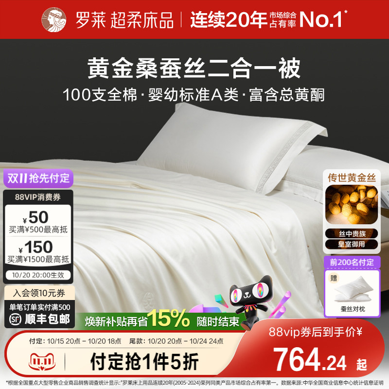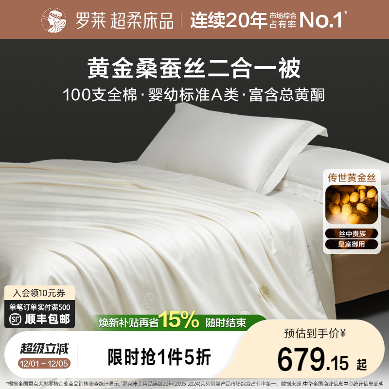 罗莱家纺100桑蚕丝被子黄金丝春秋被加厚冬被二合一被芯陪嫁喜被
