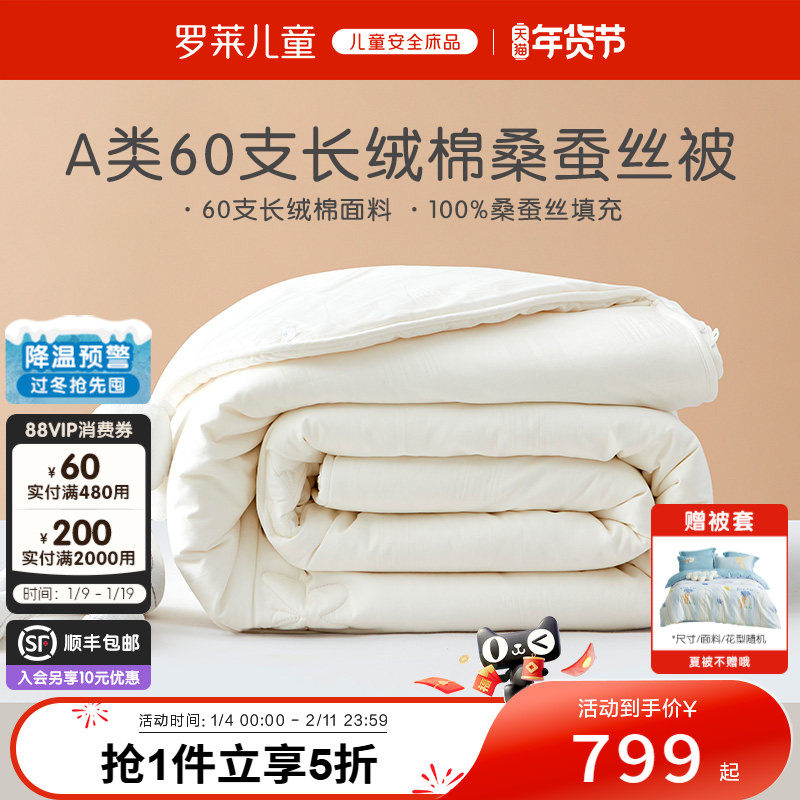 罗莱儿童A类60支长绒棉100%桑蚕丝被被芯全棉蚕丝被子母被四季被