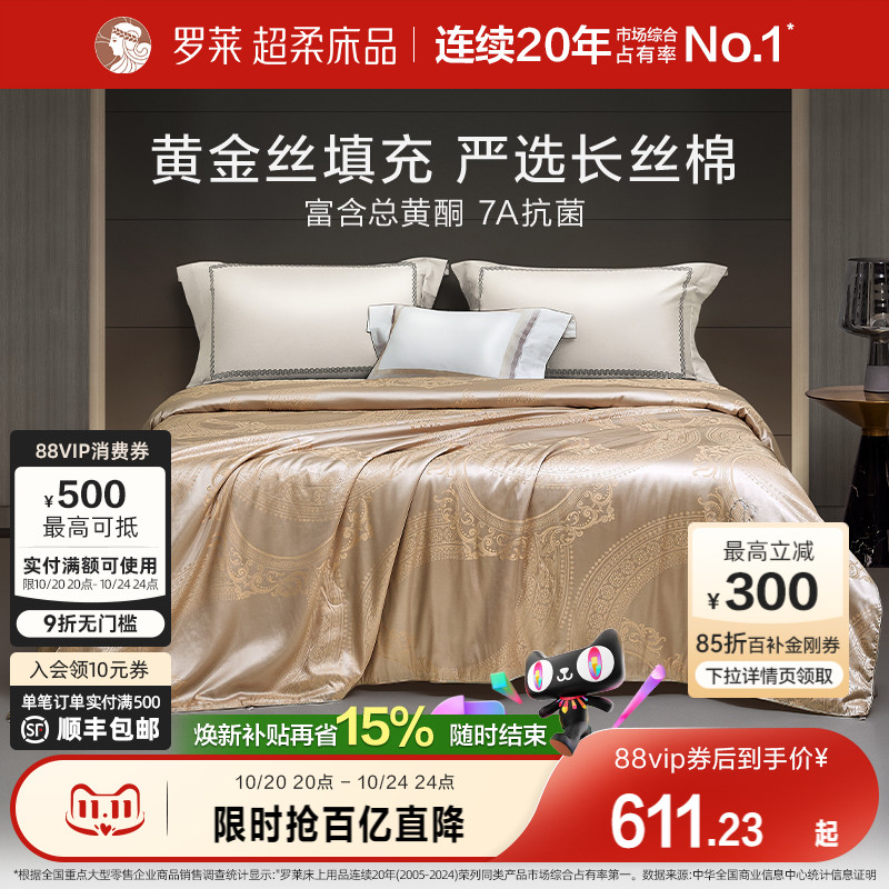 罗莱家纺提花抗菌100%桑蚕丝被子被芯黄金丝春秋被冬被四季通用