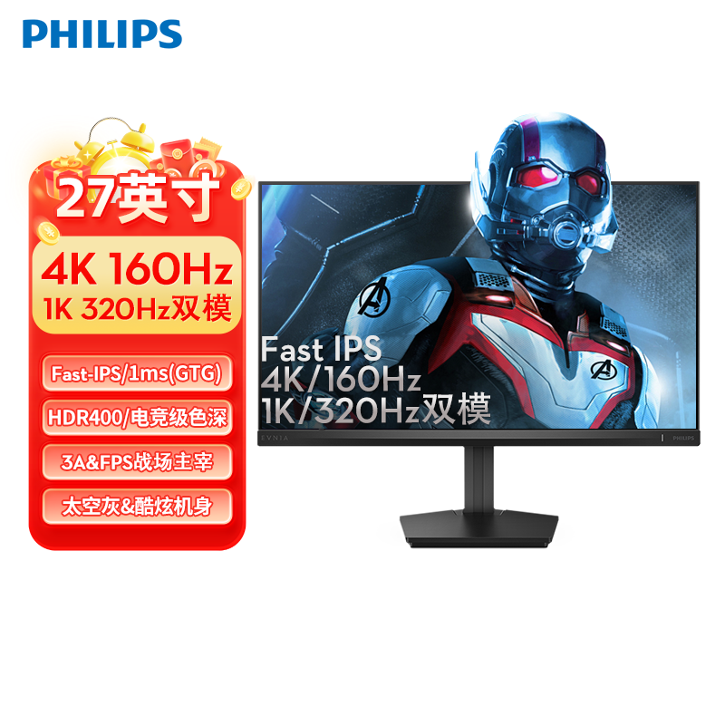 【政府补贴】飞利浦显示器27英寸4K160Hz电竞屏IPS电脑27M2N3800F