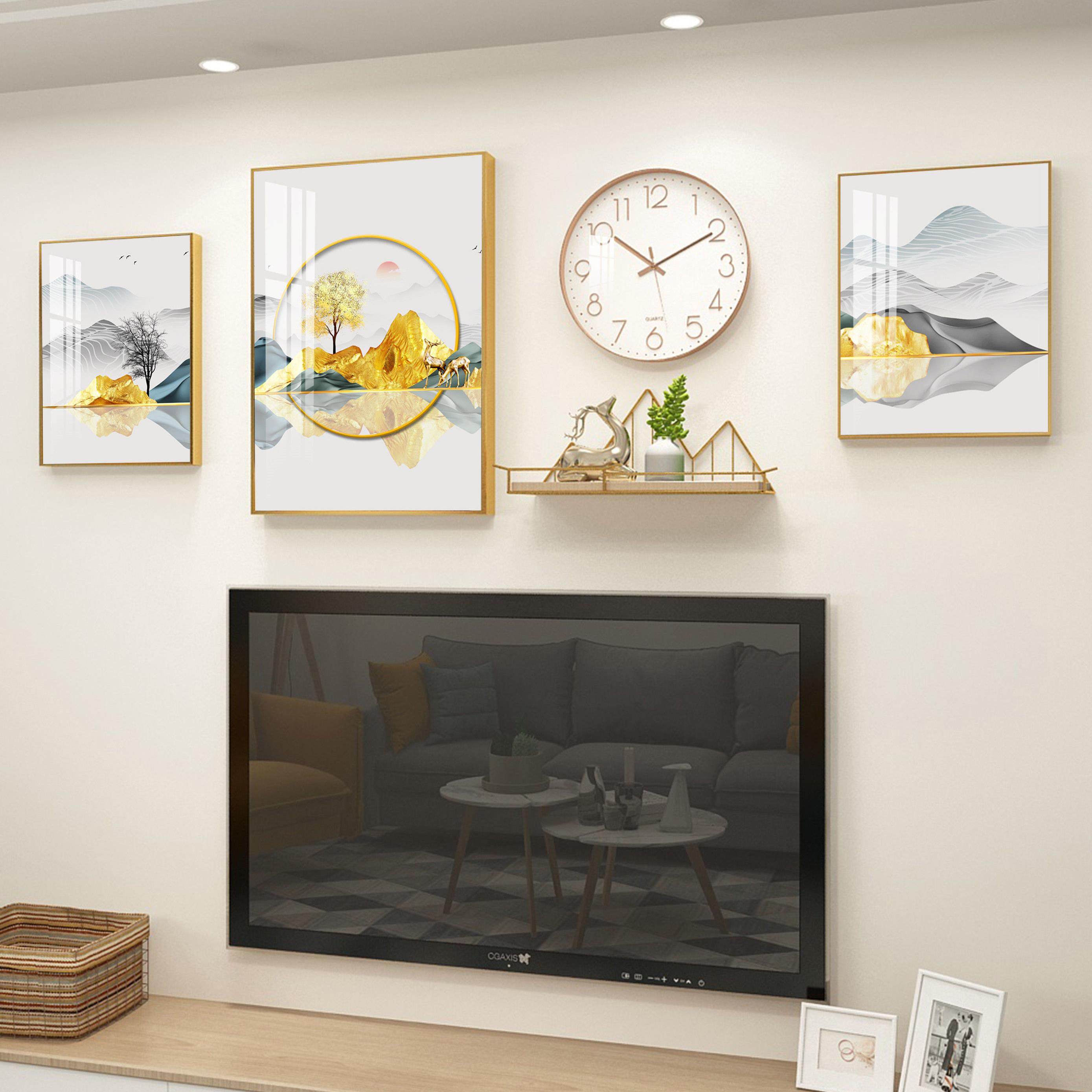客厅电视背景墙装饰画现代简约挂画影视墙壁画餐厅墙画组合晶瓷画
