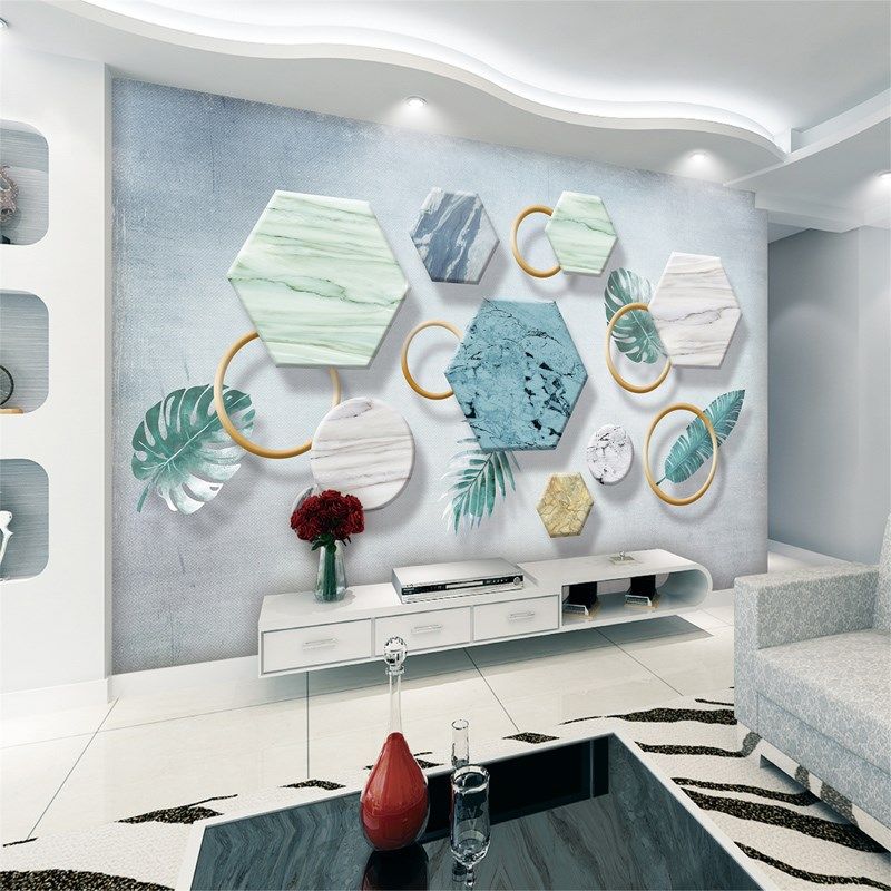 - 电视背景墙壁纸3d立体 简约现代