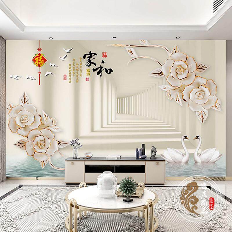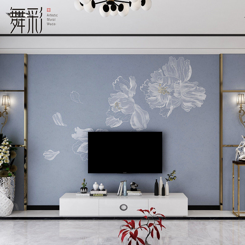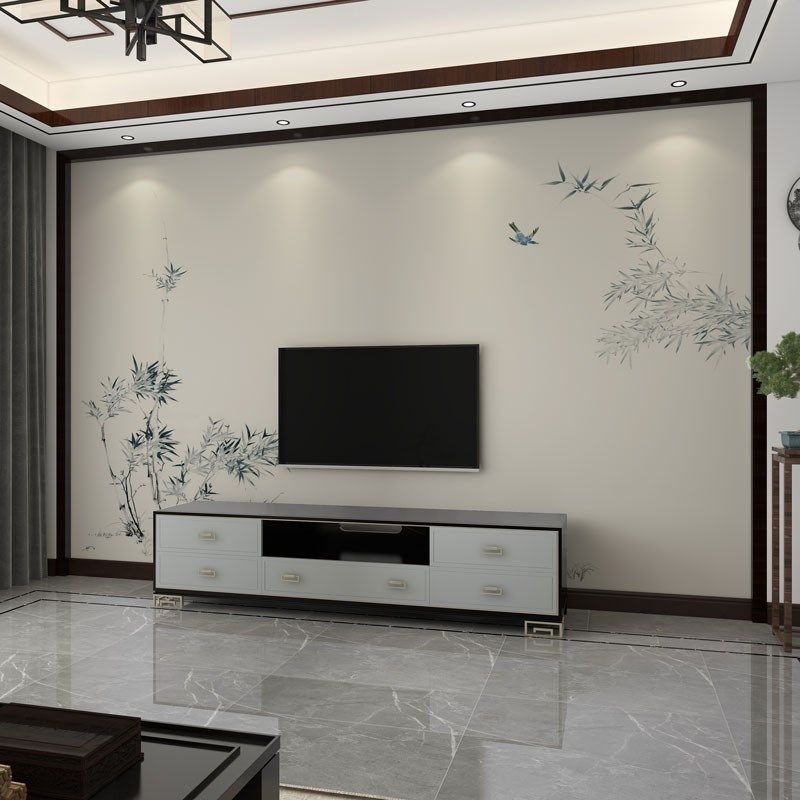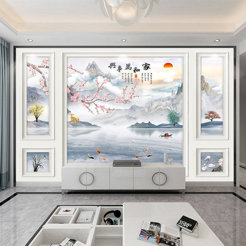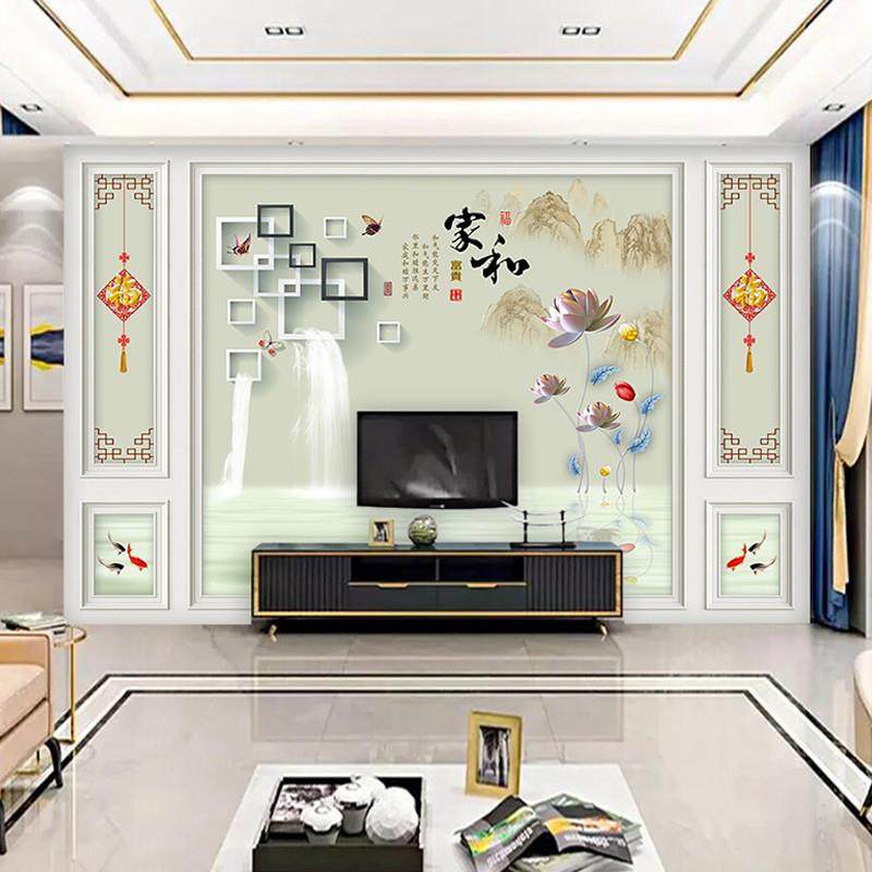 2023电视背景墙新款壁布壁画8d中式客厅影视墙壁画3d电视机墙自粘