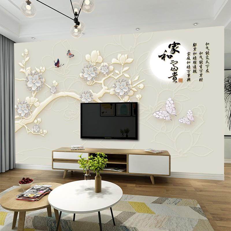 现代中式电视背景墙壁布8D影视墙壁画玉兰花3d立体装饰墙布壁纸