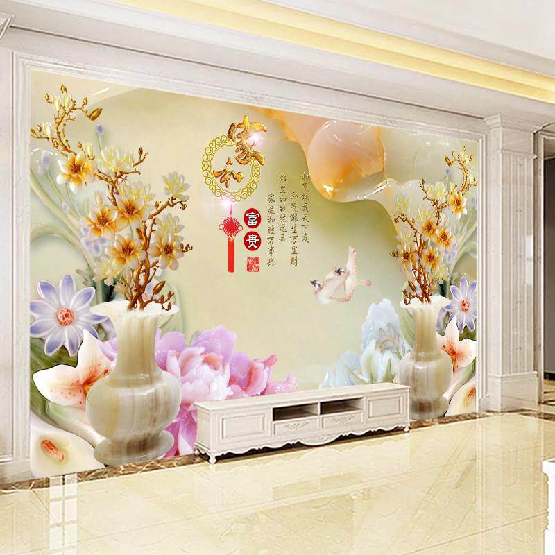 电视背景墙壁纸8d立体玉雕影视墙壁画定制墙布客厅壁布金玉满堂